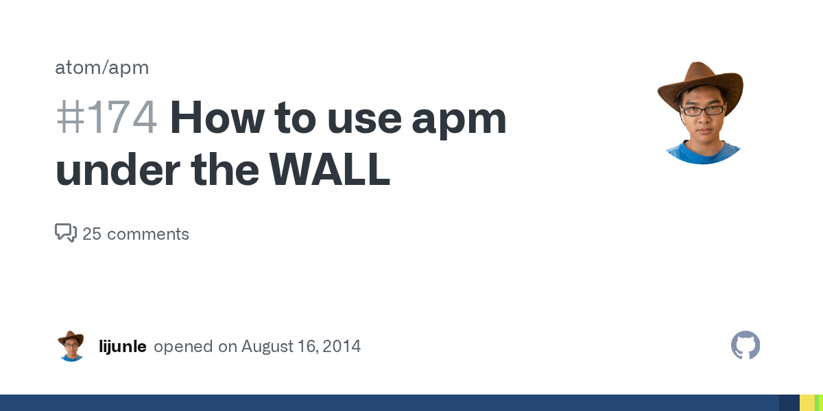 Jul 26 '16 at 11:22. Jul 26 '16 at 11:22. Aug 16, 2014 · as a solution, run the apm command, then check which is the cause of the failure. (about reverse proxy, read it below.amazon s3. Environment variable atom_node_url points to your reverse proxy. When blocked when request atom api. Add a environment variable atom_api_url to point to your reverse proxy. Aug 30, 2015 · if i start an apm config in atom/resources/app/apm it creates a.apmrc in my user directory. Jul 26 '16 at 11:22.